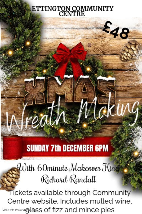 FeaturedSmall Hall Rogers Lane, Ettington, Warwickshire, United KingdomJoin us for festive wreath making. Mulled Wine, Glass of Fizz and Mince Pies. Hosted by 60 Minute Makeover King Richard Randall.